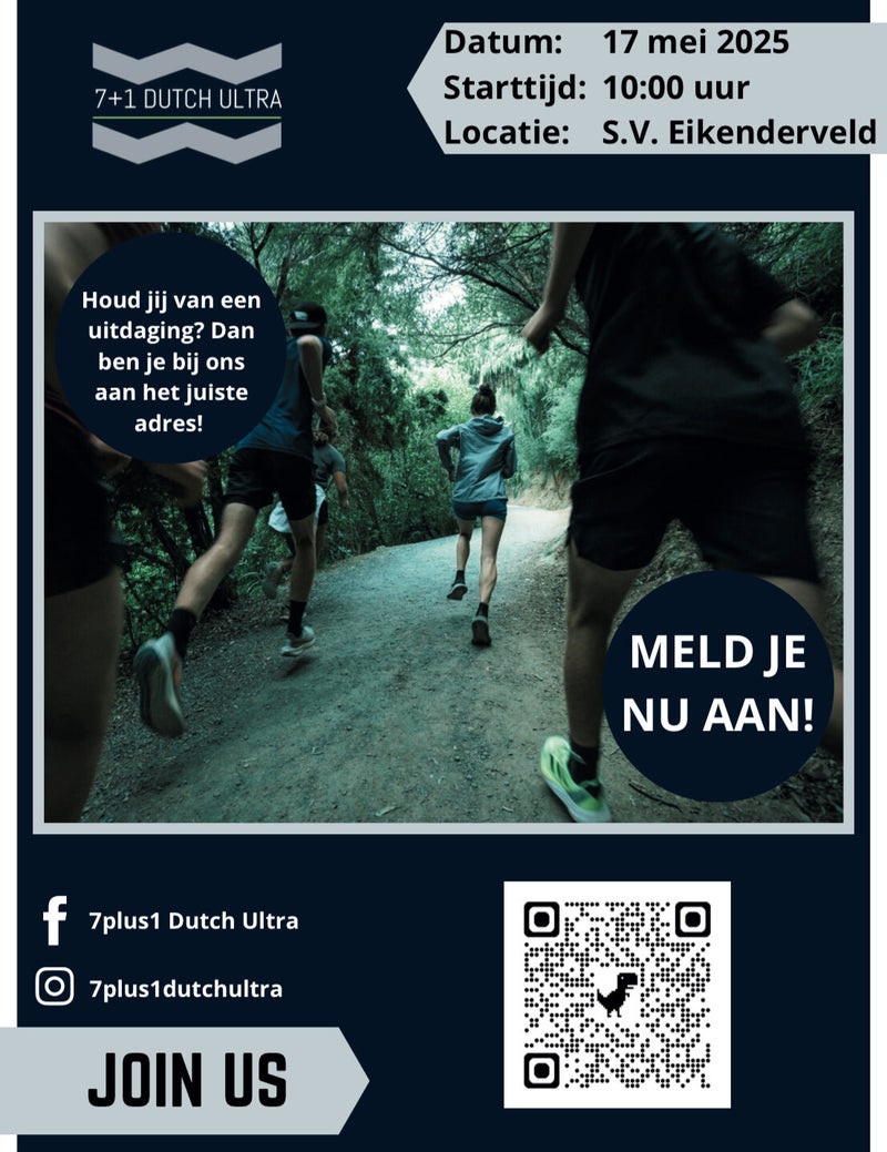 7+1 Dutch Ultra is een ultraloop waarbij de finish onbekend is. Pas als er nog maar 1 deelnemer over is is de loop klaar.